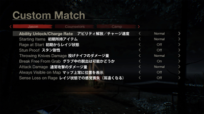 ジェイソンはほぼ無敵ですが動きが遅くカウンセラーを追うことには不利です。